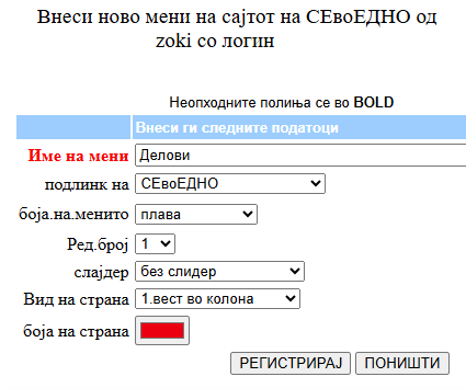 МОЖЕТЕ ДА НАПРАВИТЕ НОВО МЕНИ ПОВЕЌЕ ПАТИ