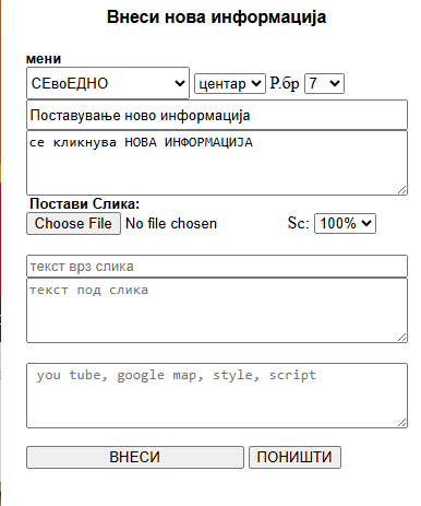 Се кликнува НОВА ИНФОРМАЦИЈА се појавува прозорец